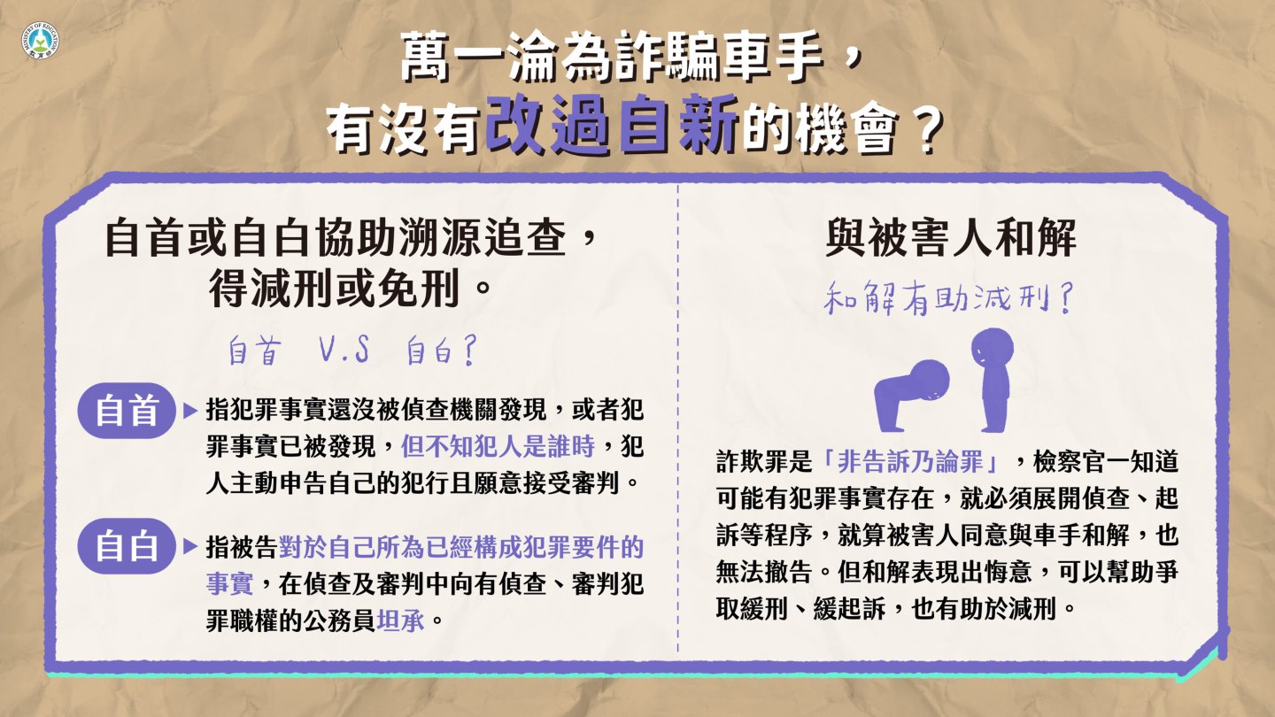 | 二、 | 近年來學生擔任車手涉詐欺案件數攀升,尤以12至23歲涉案最多,教育部藉由真實案例,解析學生擔任詐騙車手所可能承擔的法律責任,製作本案懶人包,避免學生遭不法分子利用,衍生後續的法律風險與責任。 |